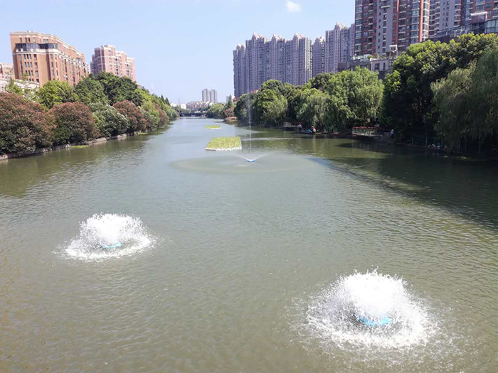 涌泉式曝气机的大流量水循环作用,使水体中的溶解氧快速提升,形成富氧的活水流,在强化水体自净能力的同时对水体微生态环境起到了改善作用。